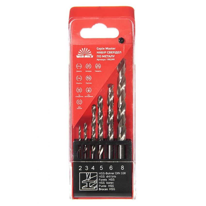 Опис набору свердл по металу Hss 4341 6 од. 2-8 мм Vitals Master