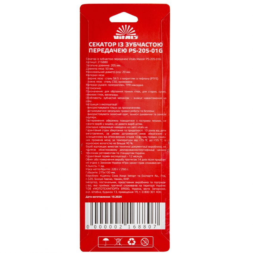 Опис секатора із зубчастою передачею Vitals Master PS-205-01G