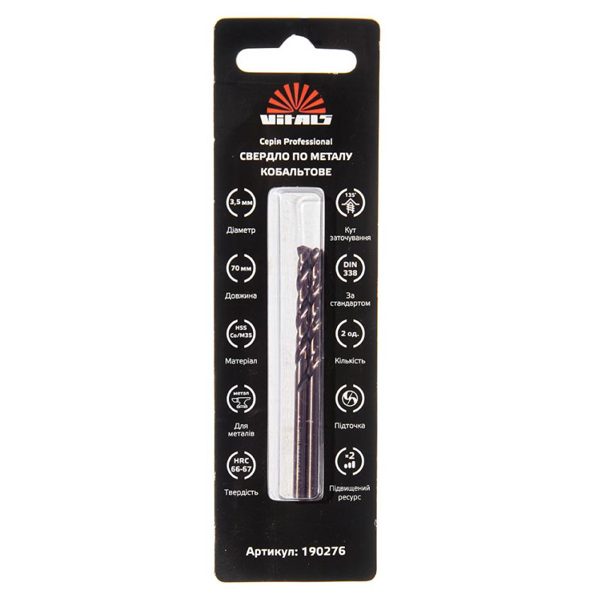 Опис свердла по металу HSS-Co/M35 3.5 (2 од.) Vitals Professional