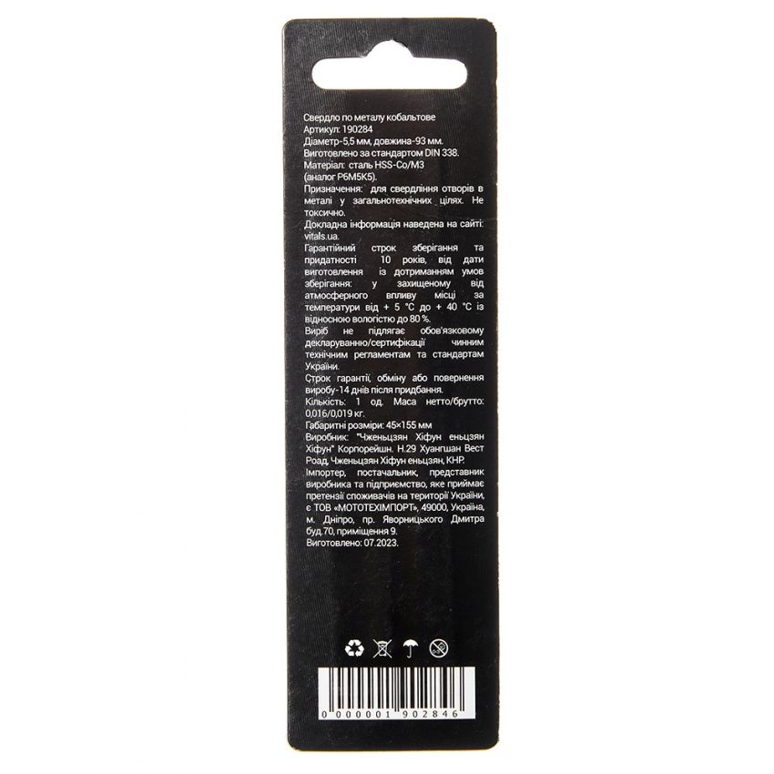 Опис свердла по металу HSS-Co/M35 5.5 (1 од.) Vitals Professional