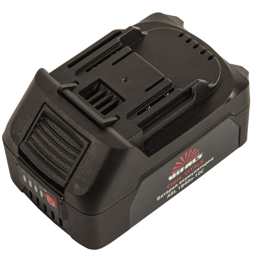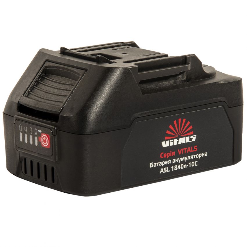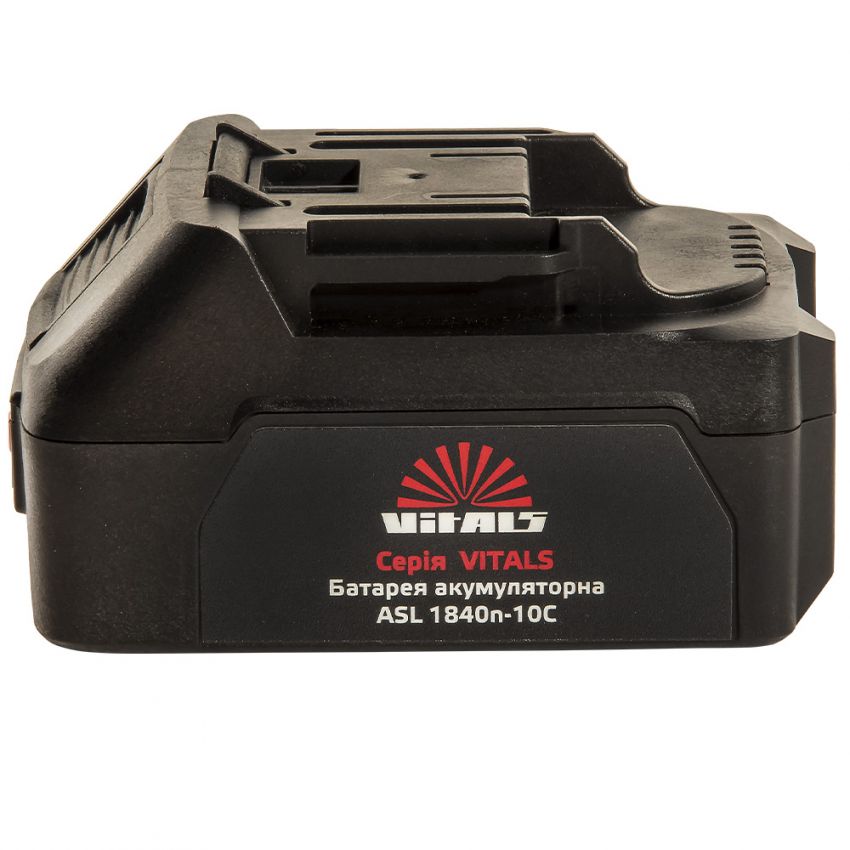 Батарея акумуляторна Vitals Asl 1840n-10С розроблена для роботи в умовах підвищених навантажень, що робить її ідеальною для інструменту котрий вимагає від джерела живлення значних показників потужності.