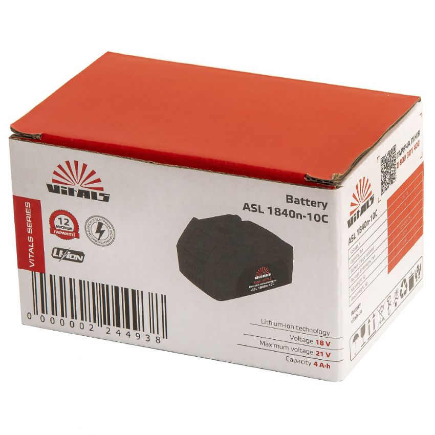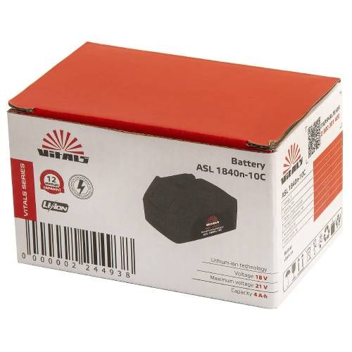 Батарея акумуляторна Vitals Asl 1840n-10С - це високоефективне і надійне джерело живлення, яке поєднує в собі потужність, довговічність та безпеку. За умови правильного обслуговування та експлуатації ця акумуляторна батарея може значно покращити продуктивність вашого інструменту та забезпечити його стабільну роботу протягом тривалого часу.