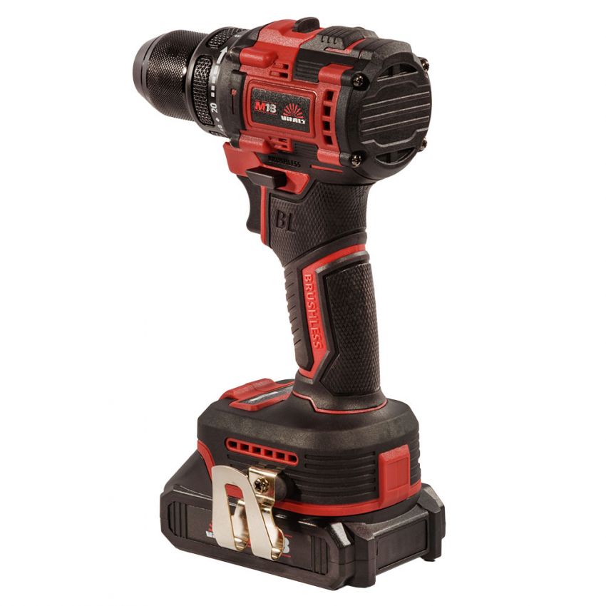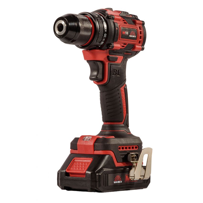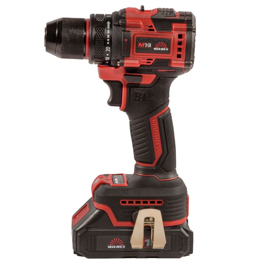 Дриль-шурупокрут акумуляторний ТМ «VITALS», серія «Мaster», лінійка інструментів «М18», модель «AU 1832c BL» — це ручний механізований інструмент з інверторним безщітковим двигуном, призначений для закручування та відкручування метизів, а також свердління отворів діаметром 0,8–10 мм. Живлення забезпечується від літій-іонної акумуляторної батареї 18 В (не входить до комплекту). Інструмент має двошвидкісний редуктор, електронний регулятор швидкості та муфту регулювання крутного моменту для безпечного і точного закручування.