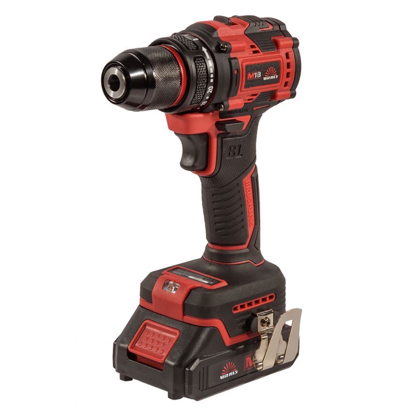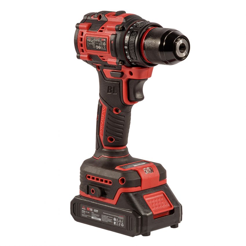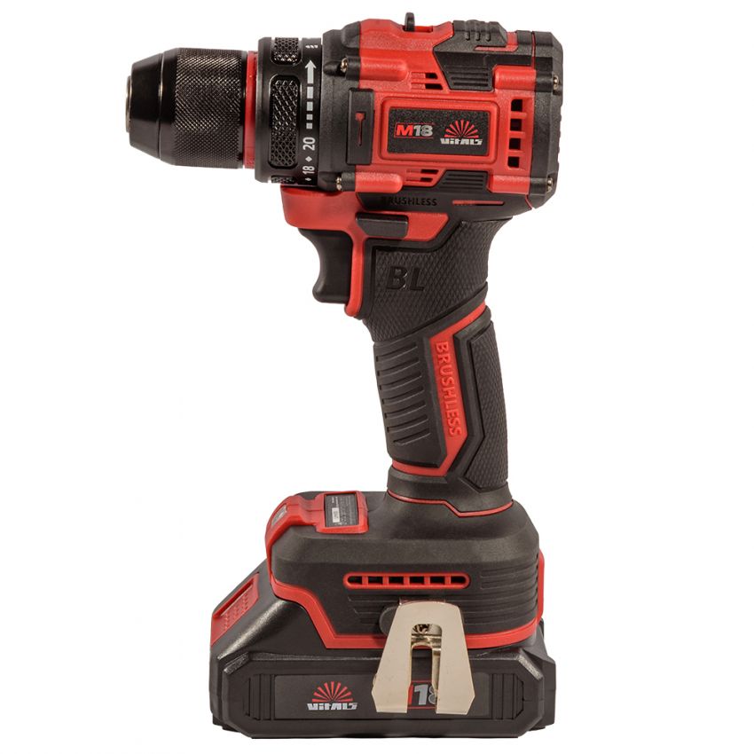 Дриль-шурупокрут акумуляторний ТМ «VITALS», серія «Мaster», лінійка інструментів «М18», модель «AU 1832c BL» — це ручний механізований інструмент з інверторним безщітковим двигуном, призначений для закручування та відкручування метизів, а також свердління отворів діаметром 0,8–10 мм. Живлення забезпечується від літій-іонної акумуляторної батареї 18 В (не входить до комплекту). Інструмент має двошвидкісний редуктор, електронний регулятор швидкості та муфту регулювання крутного моменту для безпечного і точного закручування.