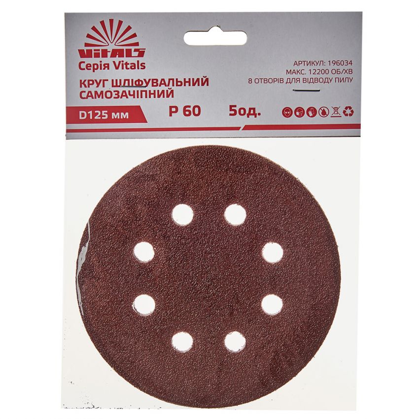 Опис круга шліфувального самозачіпного Vitals 125 мм, 8 отв., з. – 60, 5 од.