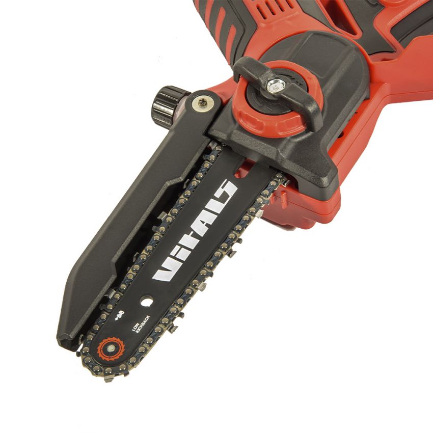 Пила ланцюгова акумуляторна Vitals Akz 1815-2n - це сучасний інструмент, який поєднує в собі потужність, мобільність та зручність. Незважаючи на свої компактні розміри, ланцюгова мініпила демонструє вражаючі показники ефективності, що дозволяє виконувати різноманітні завдання такі як обрізання гілок дерев та чагарників, різання невеликих колод чи розпилювання дошок з високою точністю та швидкістю.