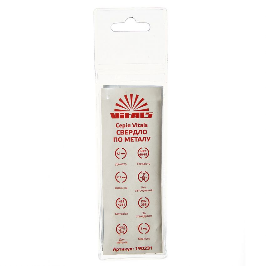 Опис свердла по металу Hss 8.0 (5 од.) Vitals