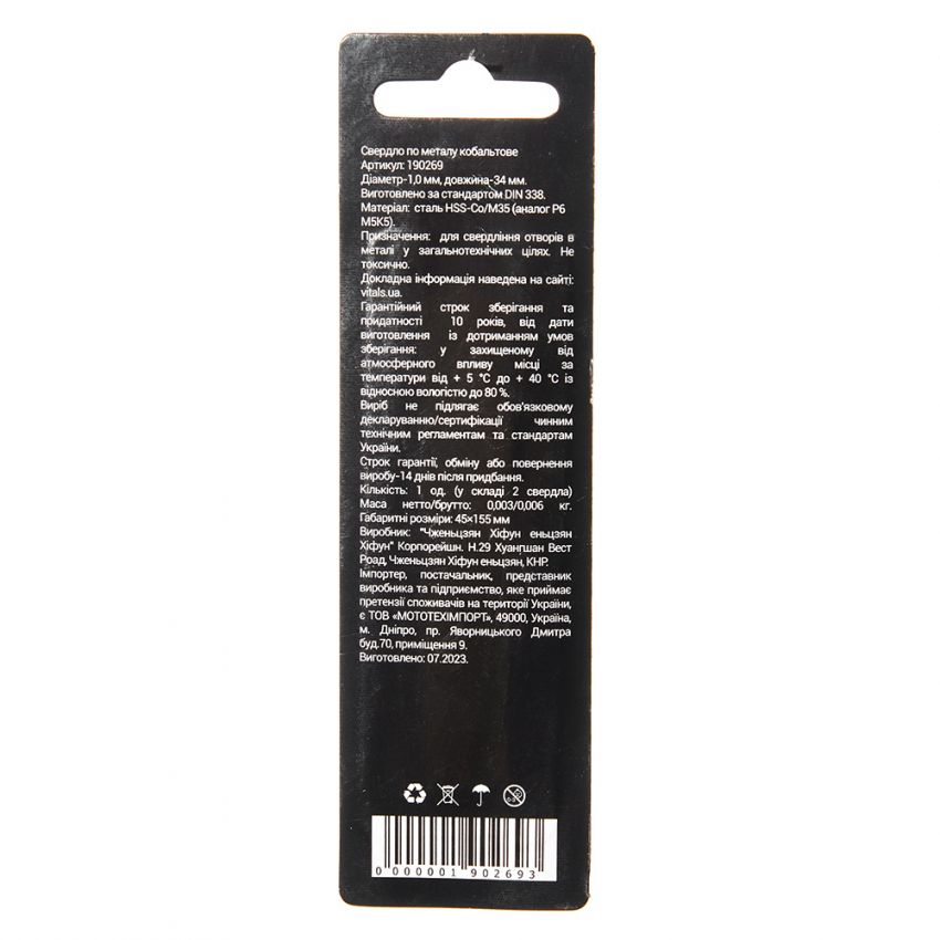 Опис свердла по металу HSS-Co/M35 1.0 (2 од.) Vitals Professional