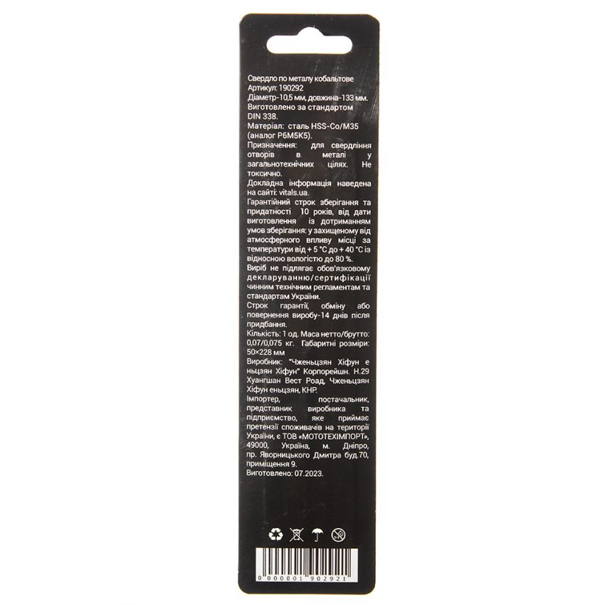 Опис свердла по металу HSS-Co/M35 10.5 (1 од.) Vitals Professional