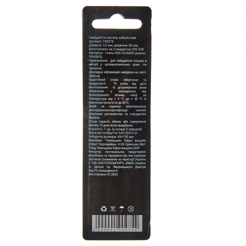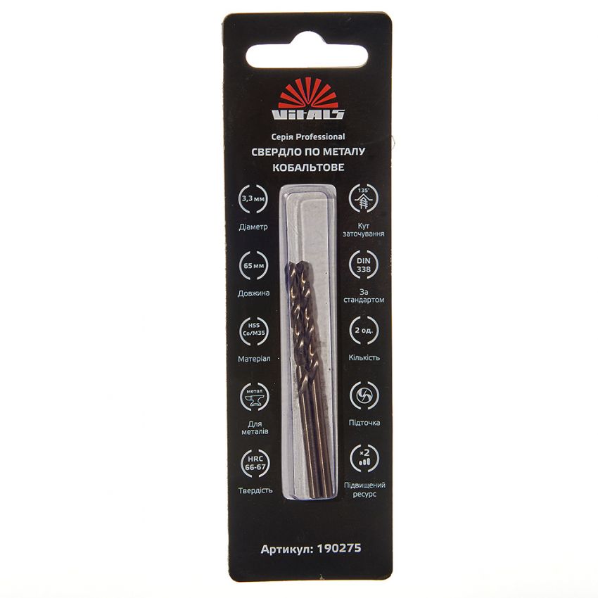 Опис свердла по металу HSS-Co/M35 3.3 (2 од.) Vitals Professional