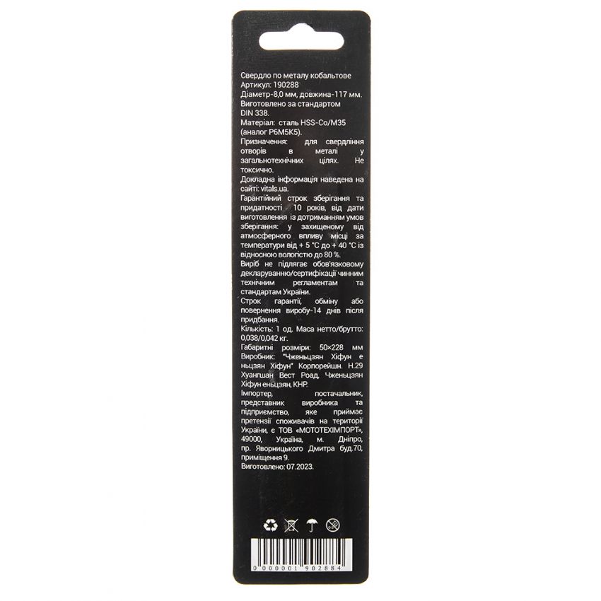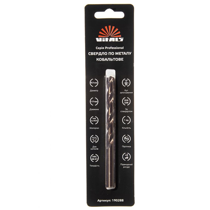 Опис свердла по металу HSS-Co/M35 8.0 (1 од.) Vitals Professional