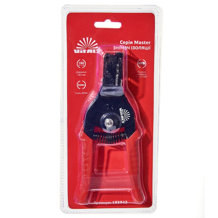 Знімач ізоляції 180 мм Vitals Master – це інструмент для зняття ізоляції з дротів та кабелів різних перерізів та типів. Він має такі характеристики.