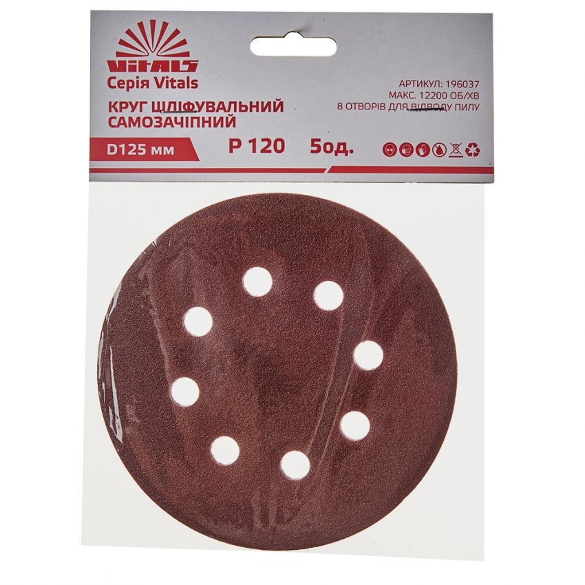 Круг шліфувальний самозачіпний Vitals 125 мм 8 отв з. 120, 5 шт.