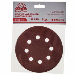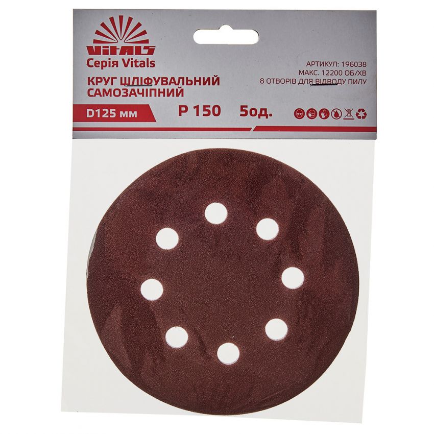 Круг шліфувальний самозачіпний Vitals 125 мм 8 отв з. 150, 5 шт.