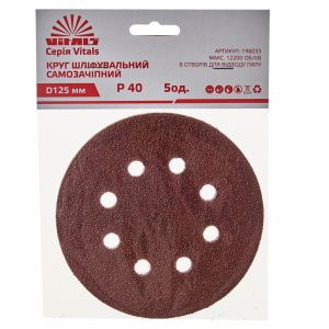 Круг шліфувальний самозачіпний Vitals 125 мм 8 отв з. 40, 5 шт.