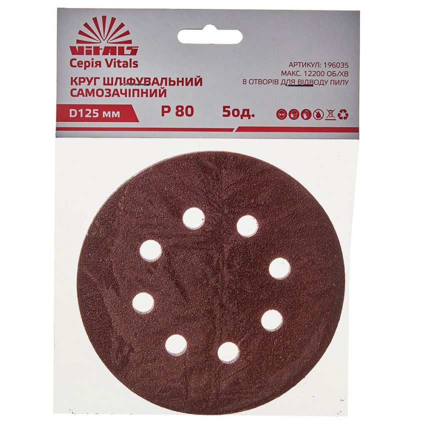 Круг шліфувальний самозачіпний Vitals 125 мм 8 отв з. 80, 5 шт.