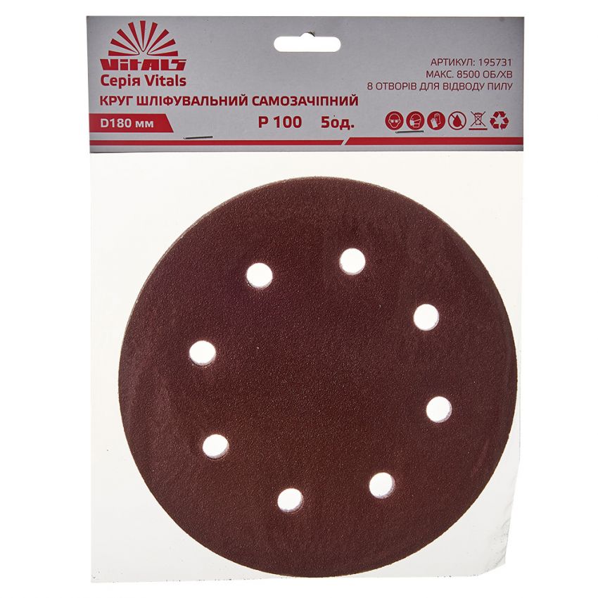 Опис круга шліфувального самозачіпного Vitals 180 мм, 8 отв. з. – 100, 5 од.