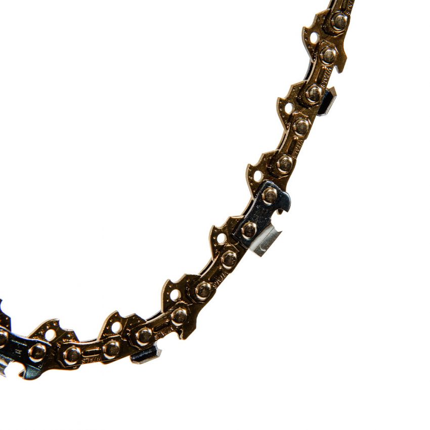 Пильний ланцюг Vitals Professional СH 3/8"-.050 16" виготовлений із легованої гартованої сталі підвищеної міцності, що вирізняється високою стійкістю до зношення, перегріву, деформацій і корозії навіть за тривалих навантажень. Ріжучі зубці виготовлені з гартованої сталі 68CrNiMo, що вирізняється підвищеною твердістю, зносостійкістю та довговічністю. Цей матеріал забезпечує тривалий термін служби без втрати ріжучих властивостей, навіть за умов інтенсивної експлуатації. Ріжучі кромки зберігають гостроту в рази довше, ніж у побутових аналогів, зменшуючи потребу в частому обслуговуванні.