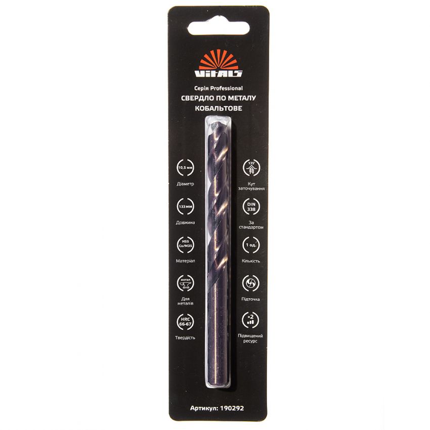 Опис свердла по металу HSS-Co/M35 10.5 (1 од.) Vitals Professional